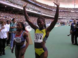 | Christine Arron ! (Crédit P.Verneaux) | Chambers vainqueur du 100 m !(Crédit P.Verneaux) |